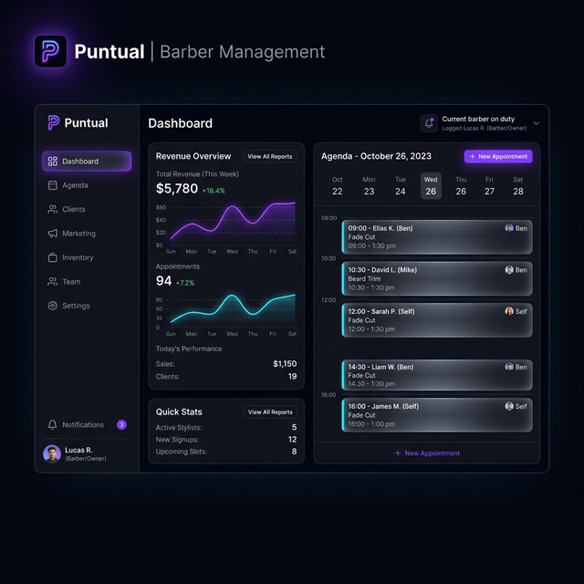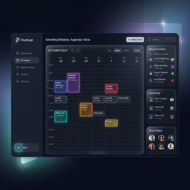 Puntual confirms bookings, sends reminders, and gives you full schedule visibility from phone or desktop at any time.